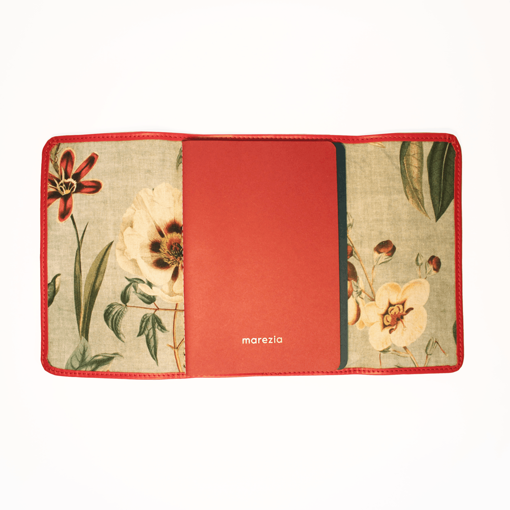 Red leather with Flowers fabric interior.