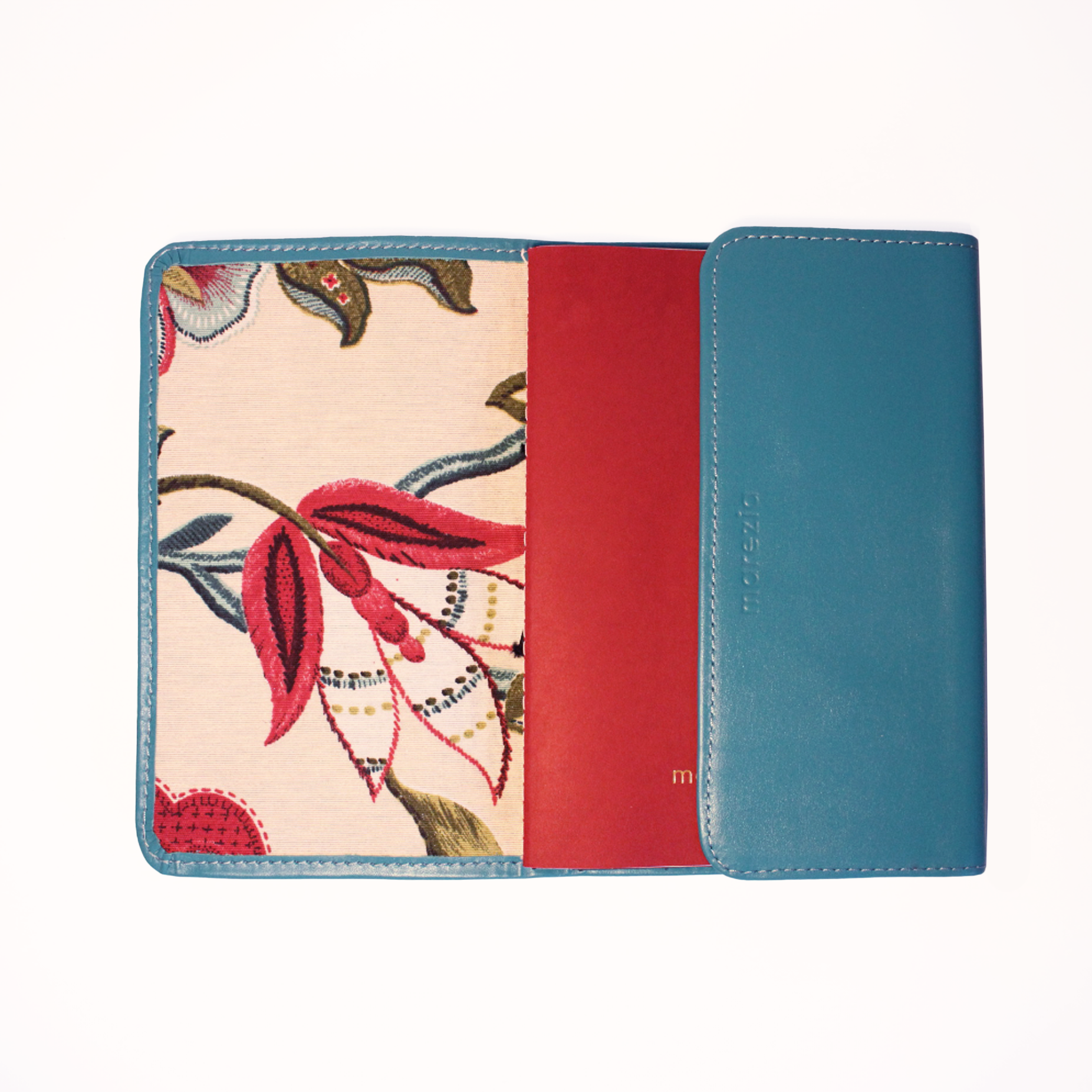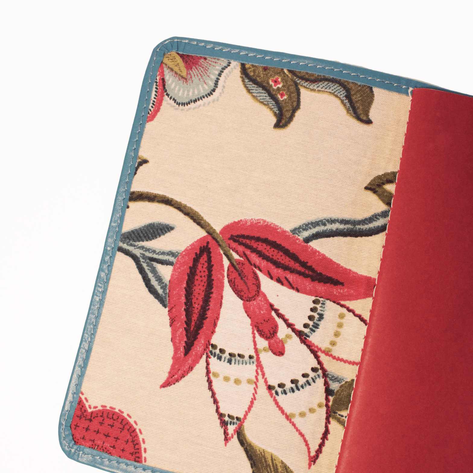 Light blue leather with Embroidery fabric interior.